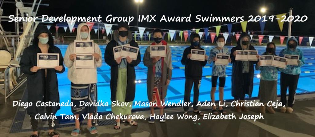 Congratulations to all our swimmers on a great 2019-2020 Swim Year, despite being interrupted by the Covid-19 Pandemic. Unfortunately we were unable to hold our annual awards dinner. This photo gallery highlights our swimmers achievement of our "Academic Honor Roll Award", "Top 10 Record Board Award", "New Team Record Award", and "IMX Challenge Award". For a complete recap of all our team awards please refer to the 2019-2020 Awards Booklet. Great job Everyone!